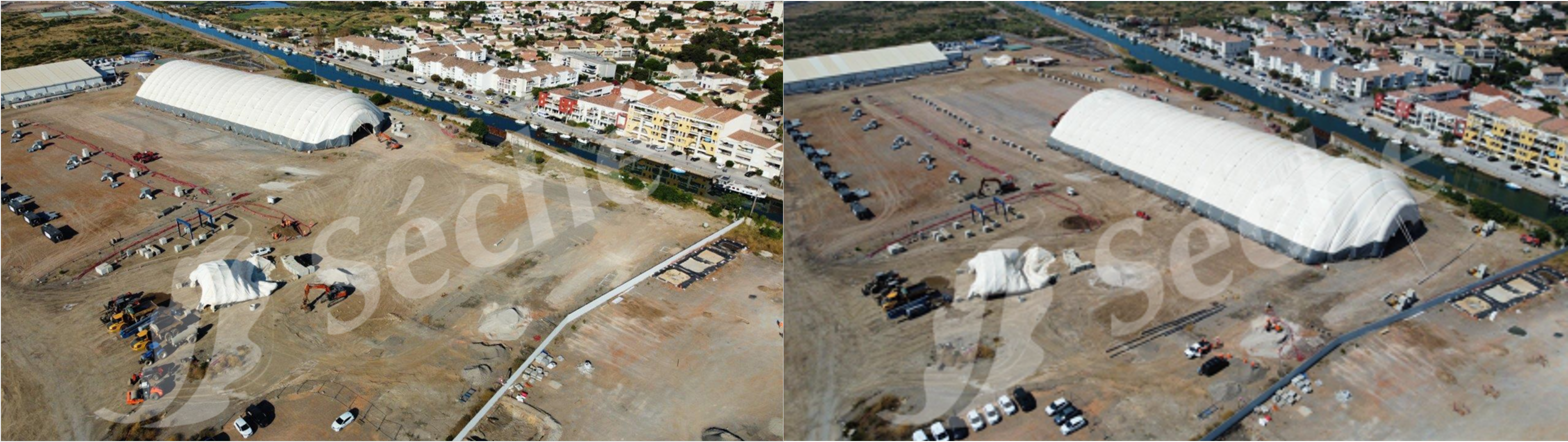 Le déplacement n°14 de la tente gonflable a effectué. Il a été découpé en un déplacement latéral le 1er juillet 2025 suivi d'un déplacement longitudinal le 2 juillet 2025.